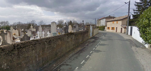 Le cimetière est situé à une dizaine de mètres de la route principale, au coeur du village (à côté du chateau).