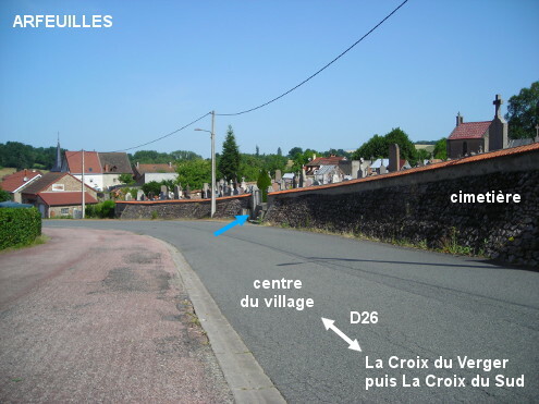 Le cimetière est implanté côté droit à l'entrée du village sur la D26 en provenance du col de la Croix-du-Sud et du lieu-dit La Croix-du-Verger, peu après le panneau de début, face à un grand parking situé de l'autre côté de la route. Entrer dans le cimetière et monter les six marches d'escaliers pour trouver une borne Bayard en haut sur la droite. Tourner le dessus pour faire couler l'eau.