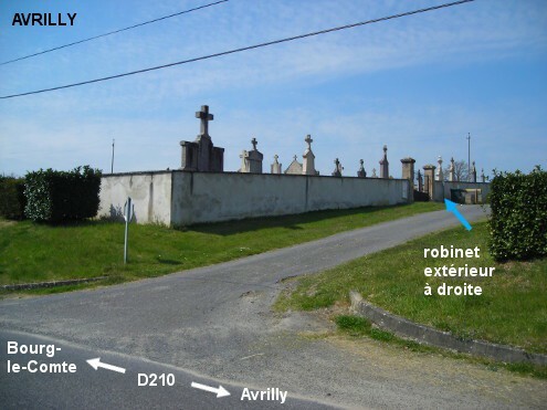 Le cimetière est très à l'écart du village, à 650 mètres du panneau de fin de village en direction de Bourg-le-Comte, sur la D210. Il est desservi par une allée côté droit. Le robinet est à l'extérieur, à droite du portail.