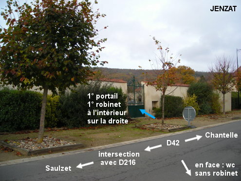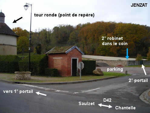 Le cimetière est situé au milieu du village au bord de la D42 mais n'est pas très identifiable de loin (une grosse tour ronde érigée à côté peut néanmoins servir de point de repère). Il comporte deux portails et deux robinets. 1) En provenance de Saulzet sur la D42, longtemps après les deux carrefours avec la D216, juste après un passage piéton en face d'une place implantée côté droit, on découvrira le cimetière côté gauche avant une grosse tour ronde. Si l'on entre par son premier portail (celui qui donne sur la D42), on trouvera le premier robinet à l'intérieur et à droite. 2) Sur la D42 en provenance de Chantelle, on peut tourner à droite avant la grosse tour ronde dans le chemin de Vauvernier qui dessert le deuxième portail du cimetière et son parking. Si l'on entre par ce portail (à gauche de la rue en cul-de-sac et à 80 mètres de la D42), on trouvera le deuxième robinet dans le coin à gauche (faire quelques pas). P.S. : Il y a des toilettes (sans robinet) de l'autre côté de la D42 presque en face du premier portail du cimetière (à gauche d'un abribus et de la place précitée).