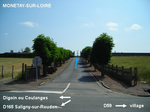 Le cimetière est implanté au bout d'une longue allée en cul-de-sac juste après la sortie du village sur la D59 en direction de Coulanges ou de Digoin (via la D779), qui est située sur la droite et en face de la D165 qui part à gauche en direction de Saligny-sur-Roudon. Le robinet est à l'intérieur du cimetière, à droite du portail.