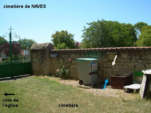 Le cimetière est situé à côté de l'église au sommet d'une rue en cul-de-sac, à 410 mètres de la D183. Le robinet est à l'intérieur du cimetière, sur le mur de gauche (faire six pas en avant pour le trouver derrière le conteneur poubelle). Sur la D183 en provenance de Charroux, suivre le fléchage indiquant le cimetière, l'église et la Mairie (cette dernière étant face à l'église). Tourner ainsi à droite puis aussitôt à droite dans la rue de l'église qui monte dans sa dernière partie. On arrive de la sorte face à l'église, à gauche de laquelle se trouve le portail du cimetière.