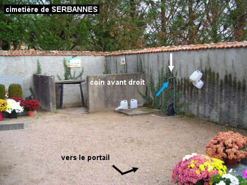 Le cimetière est implanté côté gauche à l'entrée du village sur la D417, juste après le panneau de début, 250 mètres après le carrefour avec la D984 (route à grande circulation) lorsque l'on roule en direction de Bellerive-sur-Allier. Le robinet est à l'intérieur du cimetière, vers le coin droit, juste avant l'emplacement du bac à déchets végétaux. P.S. : Si l'on continue en direction du village et que l'on va toujours tout droit (et que quand on arrive à un carrefour en T on va sur la droite), on finira par déboucher sur la D276 (qui va à gauche vers Bellerive-sur-Allier, ou à droite vers Brugheas). Dans l'autre sens, au carrefour avec la D984, la petite route en face est un ancien tronçon de la D417 qui se raccorde maintenant à la D984 plus au sud sur un rond-point avec la D906 (route à très grande circulation).