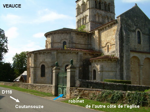 Le cimetière est implanté autour de l'église au bord de la D118. Sur la D118 en provenance de Coutansouze, on verra côté droit le portail du cimetière juste avant l'arrière de l'église dont l'entrée est orientée côté opposé à la route et donne à l'intérieur du cimetière. N.B. : Un plan du cimetière est affiché à l'intérieur immédiatement à droite du portail, on peut donc voir comment accéder au robinet (à 50 mètres). Marcher dans l'allée intérieure gravillonnée entre l'église (à gauche) et le mur d'enceinte (à droite) jusqu'au coin de l'église puis obliquer à gauche pour longer sa face avant. On aperçoit ensuite le robinet un peu sur la droite sur le mur du cimetière qui nous fait alors face.