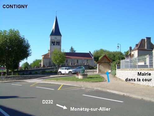 Les toilettes ont été installées dans le bâtiment d'une ancienne bascule située sur une place au bord de la D232 entre la Mairie et l'église. Sur la D232 en provenance de Monétay-sur-Allier, après la Mairie sise côté droit, tourner à droite dans la rue à droite avant l'église, puis entrer aussitôt à gauche sur la place sur laquelle il y a le petit bâtiment des toilettes le long du mur bordant ladite place, sur la droite. N.B. : Le lavabo est trop petit pour remplir un bidon directement.