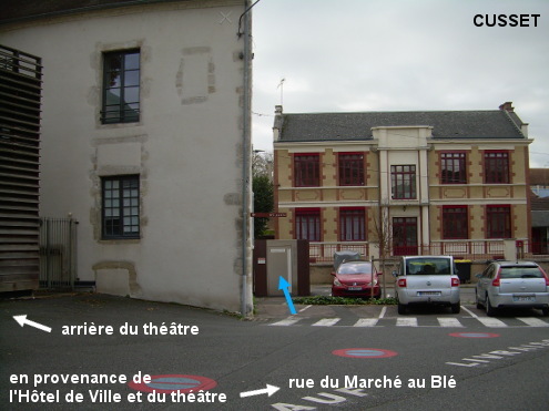Ces toilettes (fléchées) se trouvent en centre-ville derrière le théâtre situé à côté de l'Hôtel de Ville (et non loin de l'église Saint-Saturnin). Il s'agit d'une cabine WC auto-nettoyante avec un lavabo-boite muni d'une cellule à détection pour la commande de l'écoulement de l'eau (remplir un grand bidon est possible). Sur la D27 en provenance de Charmeil, après un premier rond-point au lieu-dit Beausoleil, au deuxième rond-point quitter la D27 pour suivre ''Cusset centre'' (première sortie, rue Antoinette Mizon), au troisième rond-point continuer sur ''Cusset centre'' (troisième sortie). Aux feux tricolores, tourner à droite (rue de la République, D2209) en direction de Vichy puis aux feux suivants tourner à gauche en direction de l'Hôtel de Ville (rue du Général de Gaulle). Et, avant l'esplanade qui est avant l'église, tourner à droite (flèche ''WC public à 85 mètres''). Côté gauche, il y a alors l'Hôtel de Ville en retrait par rapport à une placette puis le grand bâtiment du théâtre bien identifié dont la façade nous fait face. Continuer sur quelques mètres pour trouver les toilettes à gauche dans le coin au fond du parking situé après le théâtre. P.S.1 : Pour repartir, le contresens sur la rue du Général de Gaulle est autorisé aux vélos. PS.2 : Autrement, en continuant dans la rue du Marché au Blé, au carrefour tourner à gauche, puis au carrefour suivant où l'on voit la D126 en face, le mieux est de tourner à gauche (le panneau ''toutes directions'' ne se voit pas dans ce sens) pour accéder par la suite soit à la D175 direction Busset, soit à la D995 direction Arronnes.