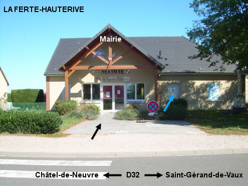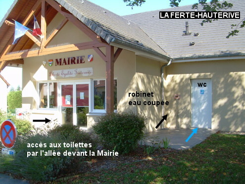 Les toilettes se trouvent dans le même bâtiment que la Mairie sise sur la D32 au milieu du village. En provenance de Châtel-de-Neuvre sur la D32 en direction de Saint-Gérand-de-Vaux, on verra la Mairie implantée côté gauche en retrait par rapport à la route, face à un passage piéton et au début d'une place arborée juste avant l'église. Prendre l'allée piétonne dallée devant la Mairie puis continuer vers la droite pour trouver la porte des toilettes (qui sont dotées d'un lavabo). N.B. : Il y a un robinet extérieur dans le coin à gauche des toilettes mais l'eau était coupée (septembre 2023).
