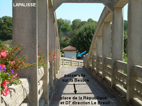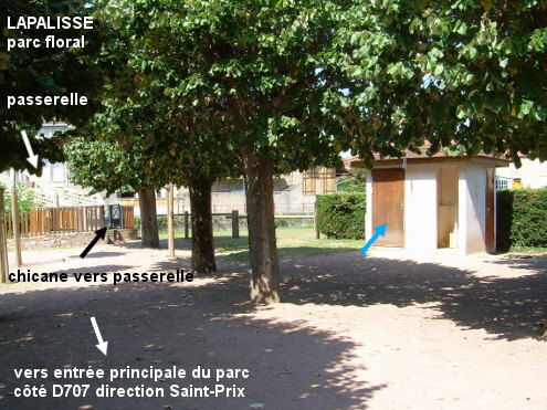 Ces toilettes se trouvent dans le parc floral à proximité de la passerelle sur la Besbre. 1) En provenance de St-Christophe sur la D208 puis la D48 (et un bout de D47 pour contourner le sens interdit), quand on rejoint la D7 venant du Breuil, on arrive presque en face de la place de la République. Tourner à gauche puis aussitôt à droite puis prendre en face le pont à arceaux en béton pour piétons en direction du parc floral. Passer la chicane donnant accès à ce jardin public pour trouver tout de suite à gauche le petit bâtiment des toilettes (à 70 mètres du ''quai de la Besbre''). N.B. : Le lavabo, dans la cabine WC (porte de gauche), est trop petit mais permet quand même de se désaltérer. 2) Sur la D480 en provenance de Dompierre-sur-Besbre, au carrefour avec la D707, tourner à gauche (en direction du centre-ville) puis plus loin (le carrefour est pré-signalé mais les flèches directionnelles sont en retrait au début de la rue et ne se voient pas de loin) tourner à droite dans la D48. Puis prendre la branche droite du Y pour suivre le sens obligatoire et tourner ensuite à gauche en direction du Breuil. On arrive ainsi presque en face de la place de la République, puis idem ci-dessus. 3a) En provenance de Saint-Prix sur la D707 (ex RN7 déclassée, avec désormais peu de circulation), surveiller le côté gauche de la route : après un camping, après un passage piéton (et un panneau d'informations touristiques installé côté droit), on découvrira 60 mètres plus loin la grande arche fleurie qui est l'entrée principale du jardin public, située en retrait par rapport aux bâtiments qui la précèdent. Entrer, descendre et parcourir 170 mètres de sentier tout droit (en contournant une sorte de rambarde puis un kiosque) pour arriver vers les toilettes situées à droite avant l'autre accès au parc du côté de la passerelle. 3b) Si on a loupé l'entrée principale du jardin public, au carrefour avec la D990A en face, continuer dans la D707 à gauche qui franchit le pont sur la Besbre, puis tourner dans la première à gauche (quai de la Besbre) pour arriver à son autre extrémité vers la passerelle menant au parc floral à gauche.