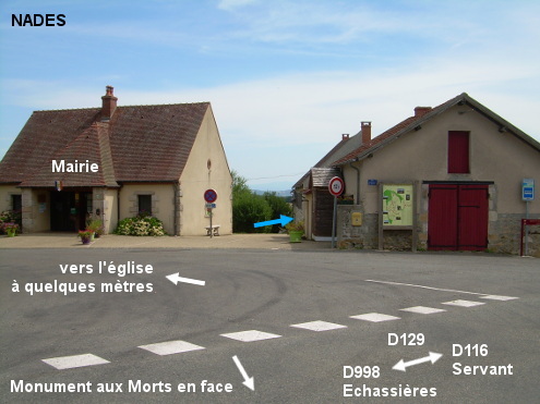 Les toilettes se trouvent à droite de la Mairie qui est visible depuis la D129. En provenance de Louroux-de-Bouble sur la D129 ou d'Echassières sur la D998, prendre la suite de la D129 en direction du village. Dans une courbe à droite, face à l'obélisque du Monument aux Morts érigée côté droit, on peut voir côté gauche la Mairie au début de la rue adjacente. Traverser la rue et faire quelques pas sur l'allée piétonne entre la Mairie et le grand bâtiment à droite. Après un cabanon en bois on verra le petit bâtiment des toilettes accolé au mur.