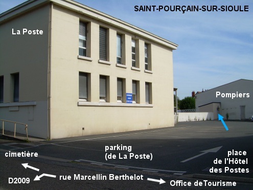 Ces toilettes se trouvent au fond du parking situé derrière La Poste, à 120 mètres du grand boulevard qui longe l'hyper-centre de la ville (la D2009). Suivre les flèches indiquant l'Office de Tourisme. En provenance de Loriges sur la D130, au rond-point continuer tout droit en direction du centre-ville (D2009), après le pont sur le deuxième bras de la Sioule, au carrefour en T continuer sur la D2009 à droite. Après deux flèches indiquant les deux premiers accès au parking sous les arbres le long du boulevard, un grand panneau annonce la direction de l'aire pour camping-car (il n'y a pas de robinet disponible), tourner alors à droite (petite flèche ''Office de Tourisme''). On voit déjà le grand bâtiment de La Poste à droite derrière la rue parallèle à la D2009 située après le parking tout en longueur. Tourner à droite puis aussitôt à gauche après la Poste pour entrer sur son parking (flèche ''WC publics''). Se diriger vers le fond et vers la gauche pour trouver le petit bâtiment des toilettes accolé au pignon de la caserne des Pompiers. P.S.1 : Si on va à Saulzet, ne pas reprendre la suite de la D2009 (route à très grande circulation) mais la rue parallèle de l'autre côté du long parking : en suivant le fléchage d'un itinéraire cyclo on monte vers le cimetière puis on traverse la D2009 pour prendre presque en face la D415 direction Saulzet. P.S.2 : Si on suit l'autre fléchage cyclo (direction Moulins), on arrivera d'abord dans le village de Contigny.