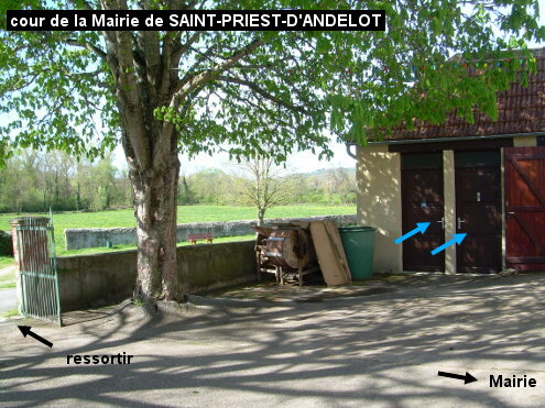 Les toilettes se trouvent dans la cour de la Mairie située à proximité de l'église dans une rue secondaire, à 300 mètres de la D132. N.B. : Le lavabo situé dans la partie hommes (porte de droite) permet le remplissage de grands bidons, tandis que celui dans la cabine WC mixte (porte de gauche) est plus petit. En provenance de Gannat sur la ''route de Saint-Priest'' puis la D132 (à droite au stop), à la fin de la zone bordée d'habitations tourner à droite en suivant la petite flèche indiquant la Mairie et l'église. Dans cette rue adjacente passer ensuite à gauche de l'église et continuer tout droit sur quelques mètres jusqu'à la Mairie sise côté droit. Entrer alors dans la cour située devant la Mairie et se diriger vers le coin à gauche pour trouver les toilettes.