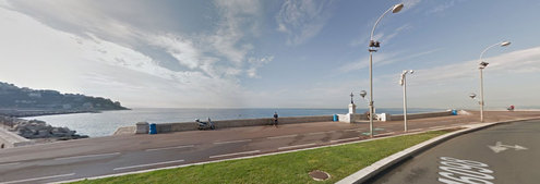 Borne d'eau le long de la piste cyclable "Quai Rauba Capeu" sur le front de mer en face du monument aux morts du même nom
