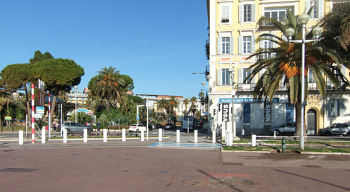 À l'extrémité est de la promenade des Anglais/en face du 109 quai des États-Unis, en face de l'avenue Max Gallo.