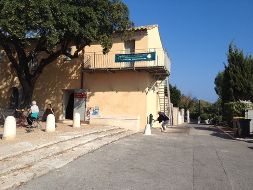Une borne se trouve à l'angle du restaurant situé à côté du phare de la Garoupe.
