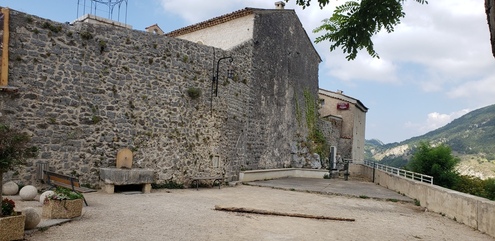 Le terrain de pétanque est en pourtour de la place du Cheiron.