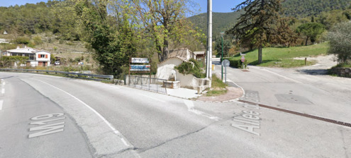 Bord de la route avec plateforme protégée au bout d’une portion plate avant deux virages sur une remontée.