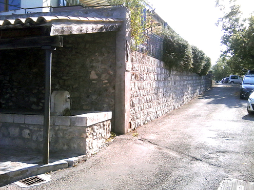 prendre la petite rue sur la gauche du restaurant situé sur la place du village. La fontaine est à 50m sur la droite.