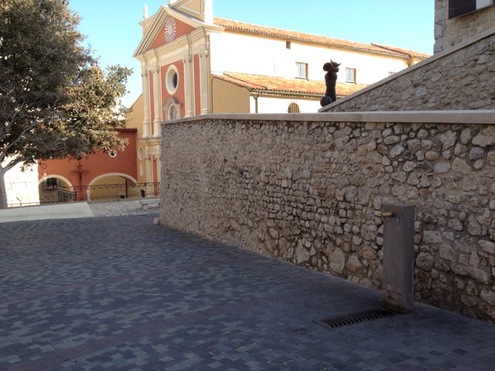 Le robinet se trouve dans les rues pavées du vieil Antibes, près du musée Picasso et de la cathédrale.