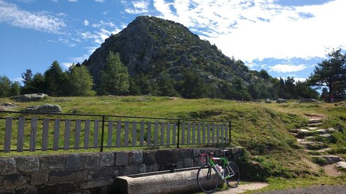 En arrivant du nord, la fontaine est contre le mur, juste à côté du bar restaurant du Gerbier de Jonc. Idéalement accessible pour les vélos