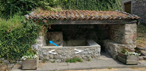 Le robinet se trouve sur un ancien lavoir abrité, implanté côté droit sur la D24 dans l'ascension du col de Meyrand. 1) En provenance de Valgorge sur la D24, après l'église érigée en surplomb côté droit, après un parking implanté côté droit avec un arrêt de bus, juste après une grande bâtisse on verra côté droit le petit abri en pierre d'un lavoir juste avant le panneau annonçant un carrefour sur route prioritaire. Le robinet est fixé sur la face intérieure du mur gauche et il est accessible directement depuis la route. 2) Sur la D24 en descendant du col de Meyrand en passant par Loubaresse, après la croix avec un Christ érigée côté droit, surveiller le côté gauche de la route : après une première maison au milieu de la végétation, on trouvera entre deux grandes bâtisses l'abri en pierres du lavoir avec son robinet, au bord de la route.