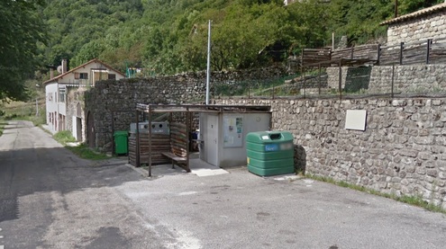 WC avec robinet d'eau potable derrière les conteneurs de recyclage