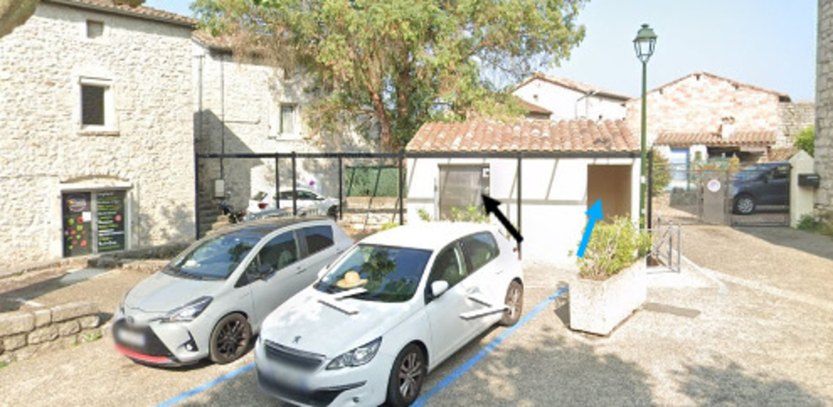 Ces toilettes se trouvent en centre-ville à proximité de la D4 au carrefour où elle fait un angle droit. 1) En provenance de Labeaume sur la D245 puis un petit bout de D208 et enfin la D4, à l'endroit où cette dernière fait un angle droit vers la gauche (fléchage direction Aubenas), tourner dans la rue à droite et faire une trentaine de mètres pour trouver le petit bâtiment des toilettes dans un renfoncement côté droit après les bâtiments et face au parking. N.B. : Il y a un lavabo dans chacune des deux parties et ils sont munis d'une cellule à détection pour la commande de l'écoulement de l'eau. 2) En provenance de Lagorce sur la D1 puis la D559, au rond-point avec la D579 on peut prendre la Voie Verte ''Via Ardèche'' qui longe la gauche de la D579 à grande circulation et deux fois deux voies (plutôt que de prendre la première sortie à droite en direction de Labeaume puis la D4 à gauche au rond-point suivant). Plus loin, à l'intersection à côté du panneau annonçant le rond-point D4 / D579, tourner à gauche (dans la D4 en sens opposé au rond-point) puis rouler tout droit jusqu'au stop du carrefour où la D4 fait un angle droit vers la droite. Prendre alors la rue en face pour trouver les toilettes quelques mètres après côté droit.
