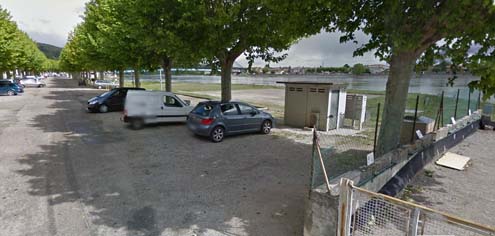 Des toiletes se trouvent sur un parking le long du Rhône.