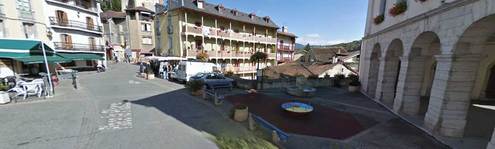 En bas de la D17 (col de la core) juste avant le pont a coté de bars et de la place du marché couvert
