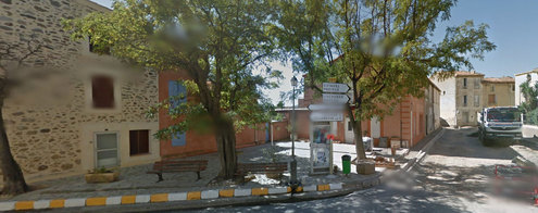Dans le centre du village sur une placette à l'intersection des routes D611 Paziols et D39 Palairac face au bar restaurant le Globe.