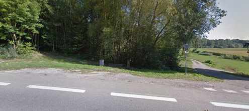Le long de la D263. Côté est de la route. Au niveau d'un croisement avec un chemin. Fontaine, banc et poubelle en gré des Vosges.