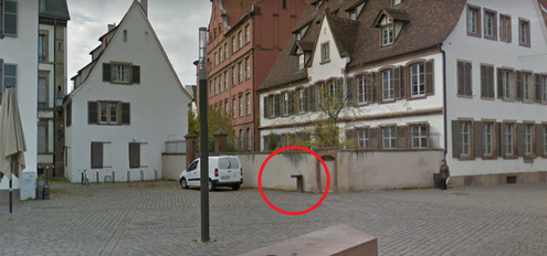 Point d'eau sur la petite place du côté Ouest de la place Saint Thomas, pas au niveau de la grande place avec l'église.