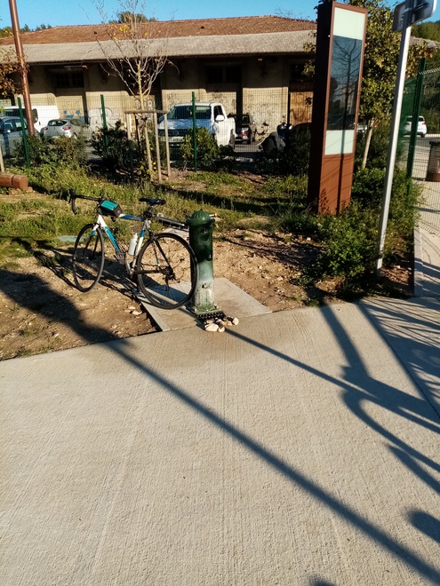 Très proche de la gare SNCF au bord de la piste cyclable toute neuve, avec des poteaux vraiment gênants, pas terrible pourtant piste cyclable très utile qui va du bord de mer à la gare