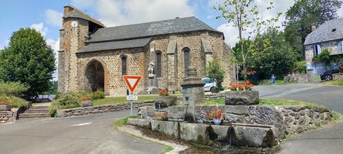 Dans le virage devant l'église, grande fontaine à plusieurs bacs.