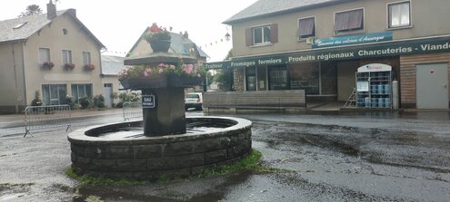 Au centre du village, une grande fontaine décorative ronde, avec de l'eau potable