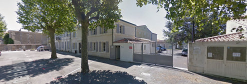 Les toilettes se trouvent sur le côté Sud de la place de la République en centre-ville, à côté d'un portail gris.