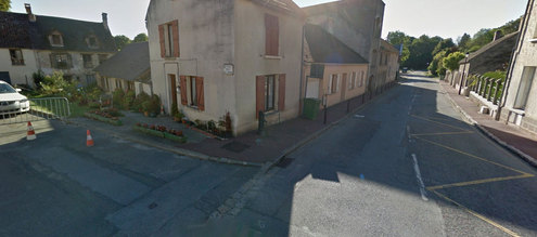 Rue principale traversant la commune, à l'angle de l'intersection d'une petite rue menant à l'église.