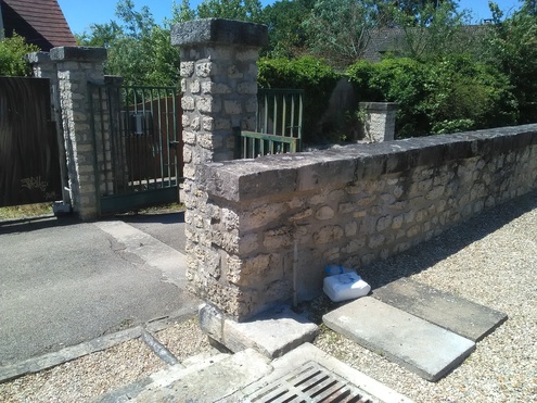 Passez le portail et derrière le muret à gauche du portail se trouve un robinet