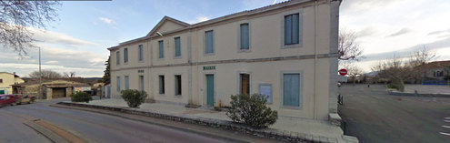 Mairie du village, le robinet est à 1m à droite de l'entrée principale de la Mairie.
