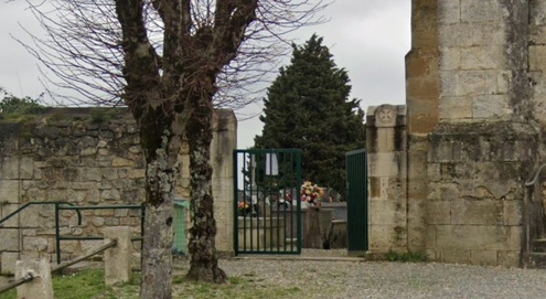 Le robinet se trouve au niveau du portail sur la gauche de l'église, juste à gauche en passant le portail