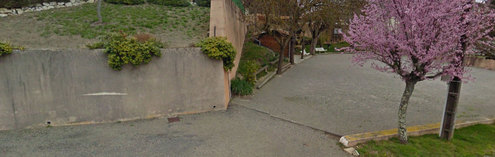 Dans le virage, le robinet se trouve sur le mur juste à gauche de l'entrée du terrain de pétanque (place gravillonnée sous les arbres).