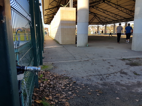 Robinet du Lac de Saint-Caprais à l’Union. Situé à l’angle de la halle couverte « Basketball court », robinet accessible (portillon) depuis la Voie Verte de la Sausse qui fait le tour du lac. Il existe une fontaine proche au bord du lac, dans un tronc d’arbre, mais elle ne fonctionne pas en décembre 2022 ( ?)