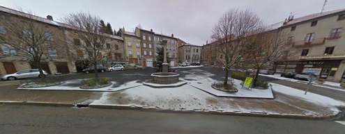 Le long de la route principale (N88), sur la Place du Foirail, à proximité d'une pharmacie.