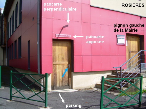 Ces toilettes se trouvent dans le même bâtiment que la Mairie, sur son pignon gauche côté place avec parking, qui est située au bord de la D7 direction Beaulieu. N.B. : Le lavabo est trop petit, mais il y a un robinet-vanne sous ce lavabo (attention : l'eau gicle !). 1) En provenance de Beaulieu sur la D7, un moment après le rond-point avec la D71 qui arrive à droite de Malrevers, on verra côté gauche un parking et à droite de ce parking le grand bâtiment en partie rougeâtre de la Mairie qui est en retrait par rapport à la route. Se diriger vers le coin arrière gauche de la Mairie (à 30 mètres de la D7) pour trouver la porte des toilettes (il y a une plaque apposée dessus, et une pancarte perpendiculaire fixée au mur au-dessus, pour l'identifier). 2) Sur la D35 en provenance du Pertuis et du lieu-dit Lachaud-de-Rougeac, face au sens interdit (tronçon de D35 en sens unique) suivre à gauche la flèche ''toutes directions'', puis suivre la courbe à droite, pour déboucher à un carrefour en T sur la D7. Tourner à gauche dans la D7 en direction de Beaulieu pour trouver la Mairie peu après côté droit, et les toilettes à l'extrémité de son pignon gauche au bord du parking qui jouxte la Mairie.