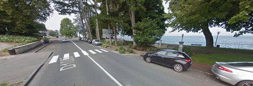 Sur la promenade, côté lac, face à l'hôtel Hilton.