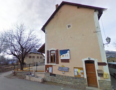 Juste devant l'école, à l'embranchement des routes de Savines, Réallon et Embrun.