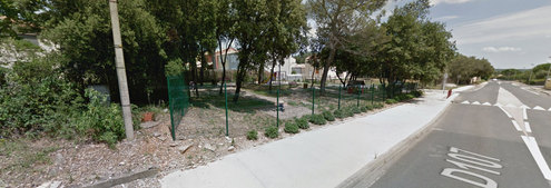 Il y a une fontaine dans le parc de jeux pour enfants. Il faut marcher sur quelques mètres car le parc est interdit en vélo. Elle est verte, de type colonne, en haut entre les 3 bancs.