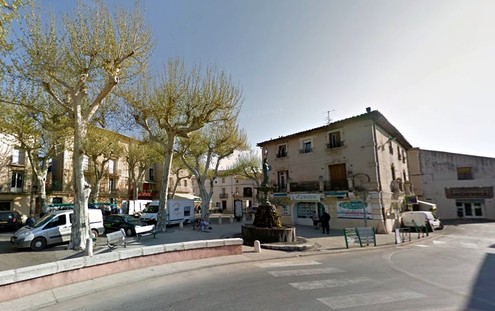 La fontaine se trouve sur la Grand Place au petit rond point de la D2 qui est à l'intersection de l'Avenue du Pont et de l'Avenue de Paulhan.