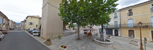 Fontaine collée à la tour et sa cloche - ne pas prendre d'eau à la grosse fontaine sur la place (non potable)