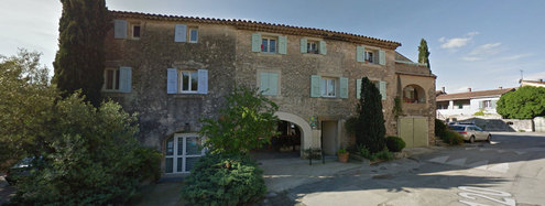 En face de la mairie, il y a un gite rural avec deux places de vélo devant. le robinet poussoir est collé au mur à gauche de l'entrée du gite