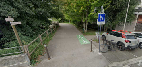 La fontaine se trouve le long de la piste cyclable/piéton.
